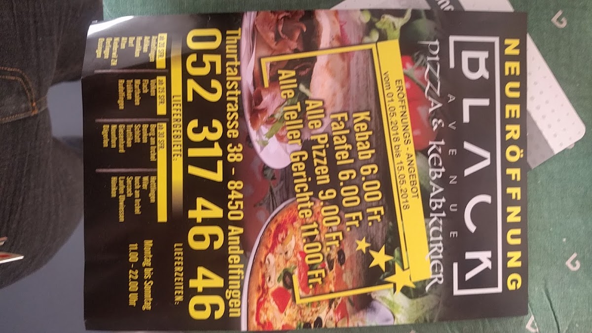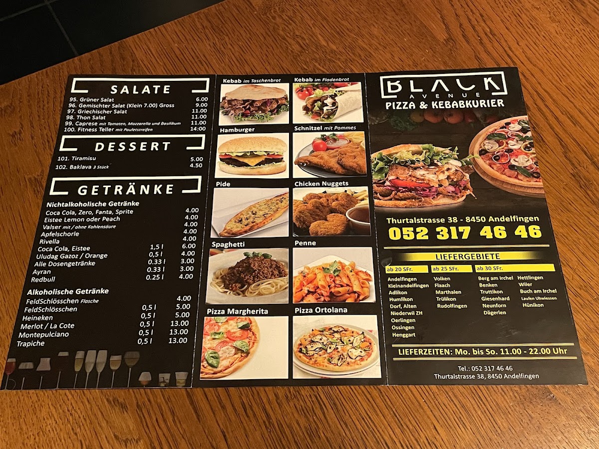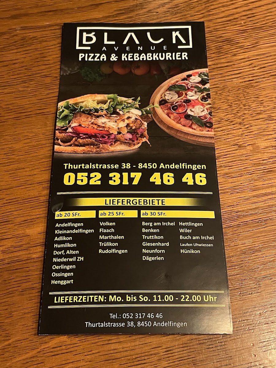 Welcome to Black Avenue, the go-to fast food restaurant located at Thurtalstrasse 38 in Andelfingen, Switzerland. Known for their impressive variety of dishes and unbeatable prices, Black Avenue has quickly earned a reputation as a culinary gem in the area. Customer reviews highlight their delicious kebabs and döners, often described as "top Essen," showcasing the quality and taste you can expect from each meal.